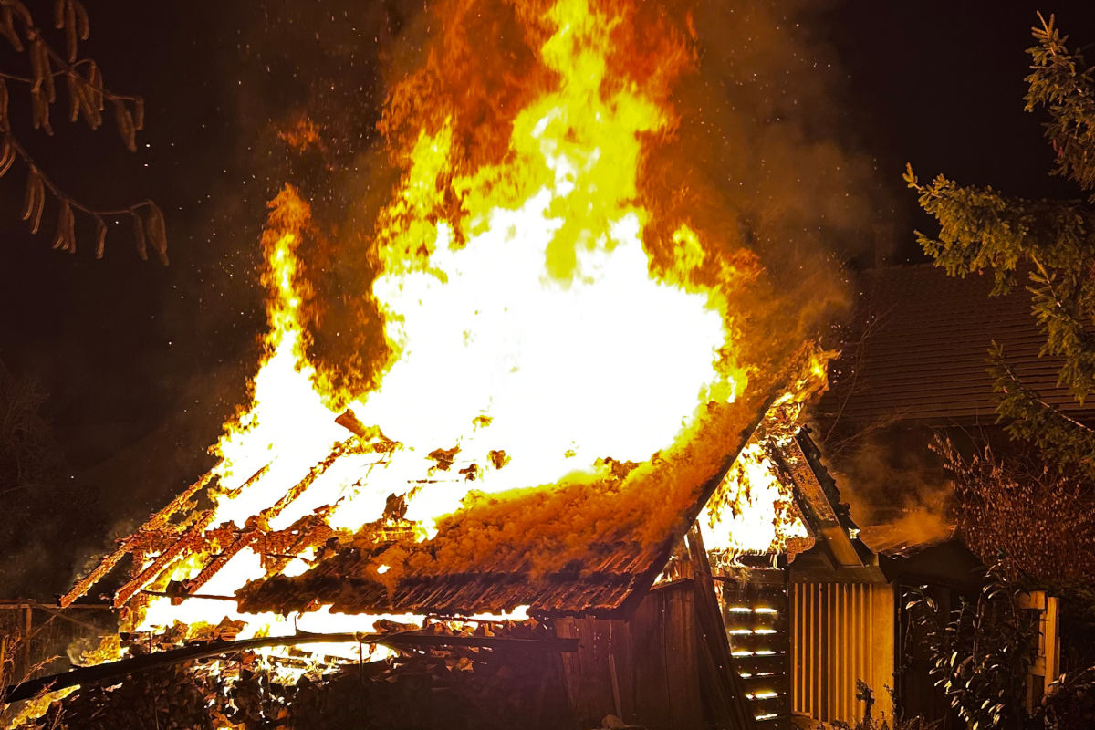 Kurz nach 1 Uhr meldete ein Passant der Kantonalen Notrufzentrale, dass ein Holzschopf beim Brunnengässli in Brand geraten sei. Beim Eintreffen der Einsatzkräfte stand der Schopf bereits in Vollbrand.