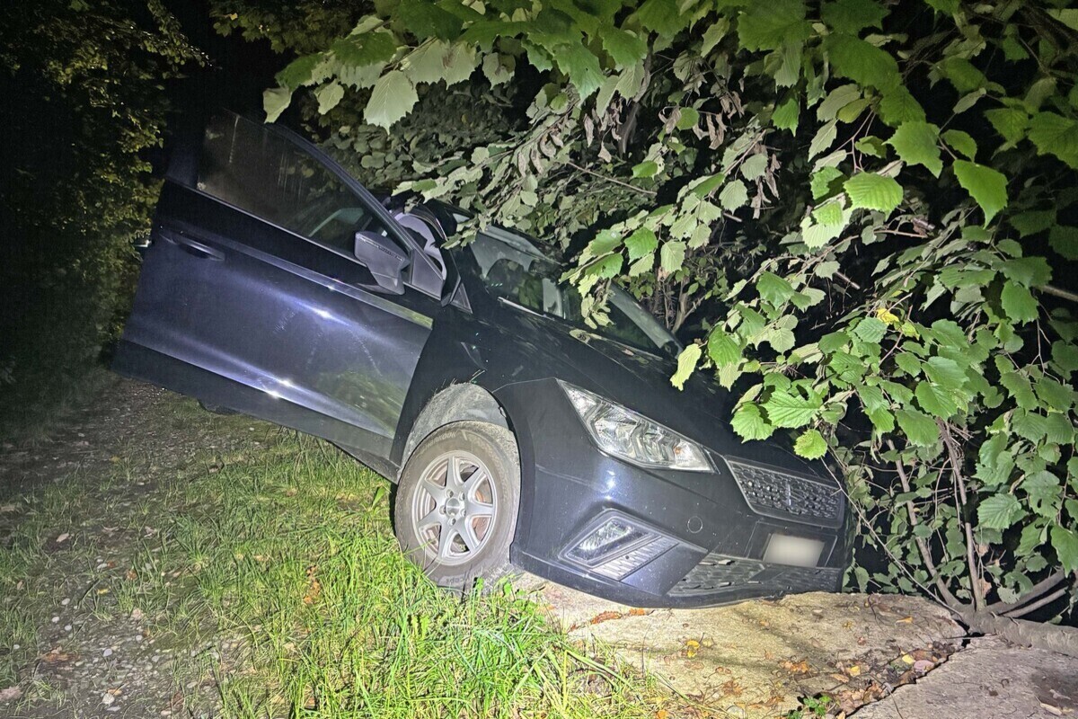 Das Fahrzeug war aus noch ungeklärten Gründen links vom Weg abgekommen und steckengeblieben. Der Fahrer sass schlafend auf dem Fahrersitz. Es entstand Sachschaden von mehreren hundert Franken.