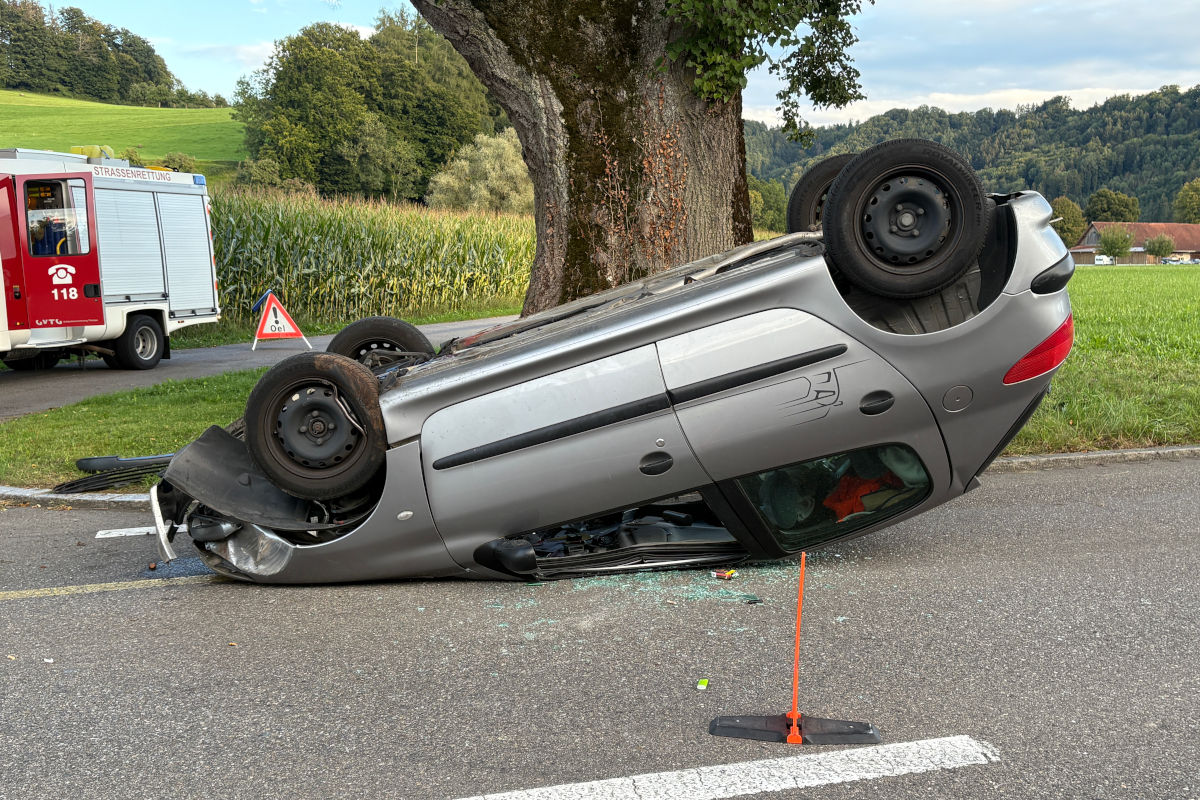 Kurz vor der Verzweigung mit der Anwilerstrasse kam ihr Fahrzeug rechts von der Fahrbahn ab und kollidierte mit einem Baum. Dabei überschlug sich das Auto und kam auf dem Dach liegend zum Stillstand.